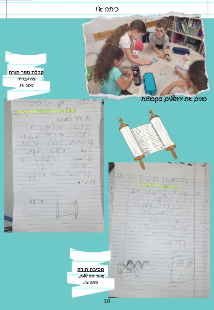 כיתה א'1 קבלת ספר תורה נעה מזרחי. כיתה א'.1 בונים את ירושלים בקבוצות מסיבת תורה ענבר איש שלום. כיתה א'.1 10