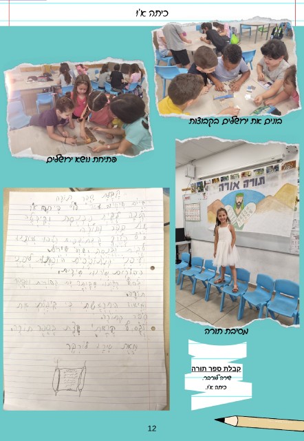כיתה א'1 בונים את ירושלים בקבוצות פתיחת נושא ירושלים מסיבת תורה קבלת ספר תורה שירה לורבר. כיתה א'.1 12