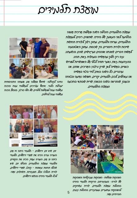 משלוחי מנות לפעילות לילדים של חולי סרטן .בנוסף ,הכנת ומועצת התלמידים.